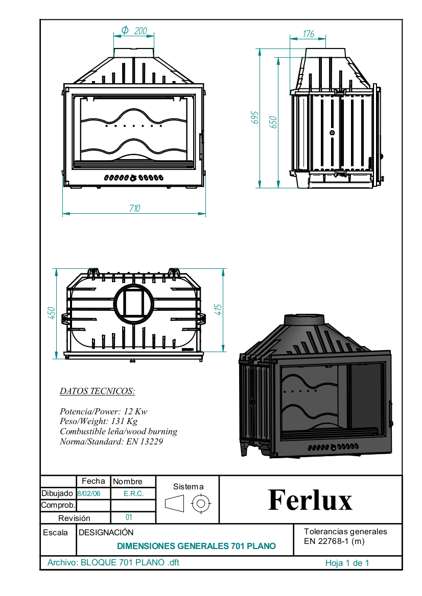 CAMINETTO FOCOLARE IN GHISA FERLUX 701