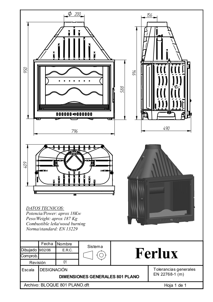CAMINETTO FOCOLARE IN GHISA FERLUX 801